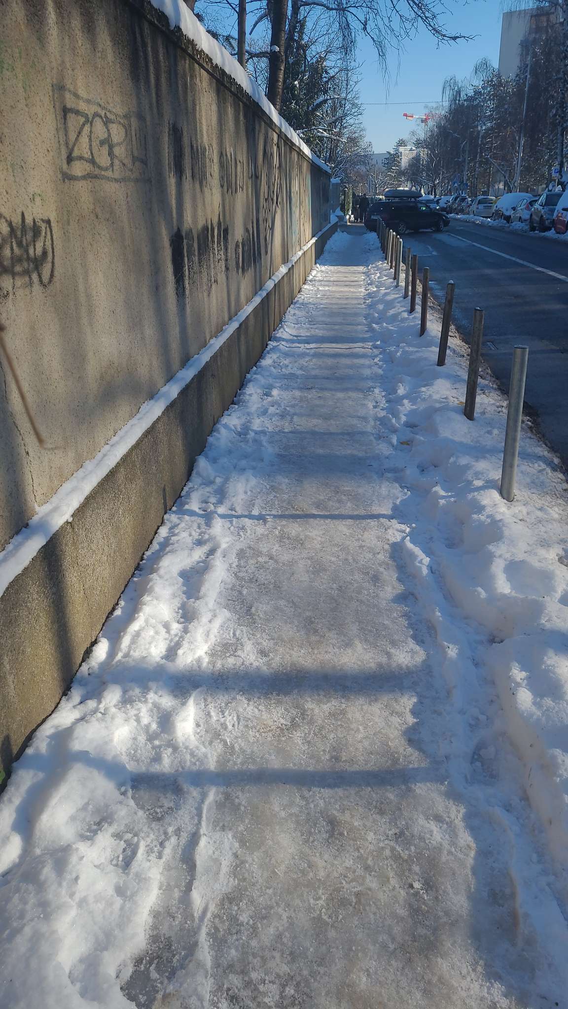 U ulici Jordanovac, na dionici između crkve i privatnog parkinga koji se naplaćuje, otprilike između kućnih brojeva 119 i 115, pločnik nije očišćen te je kretanje pješaka otežano i nesigurno.