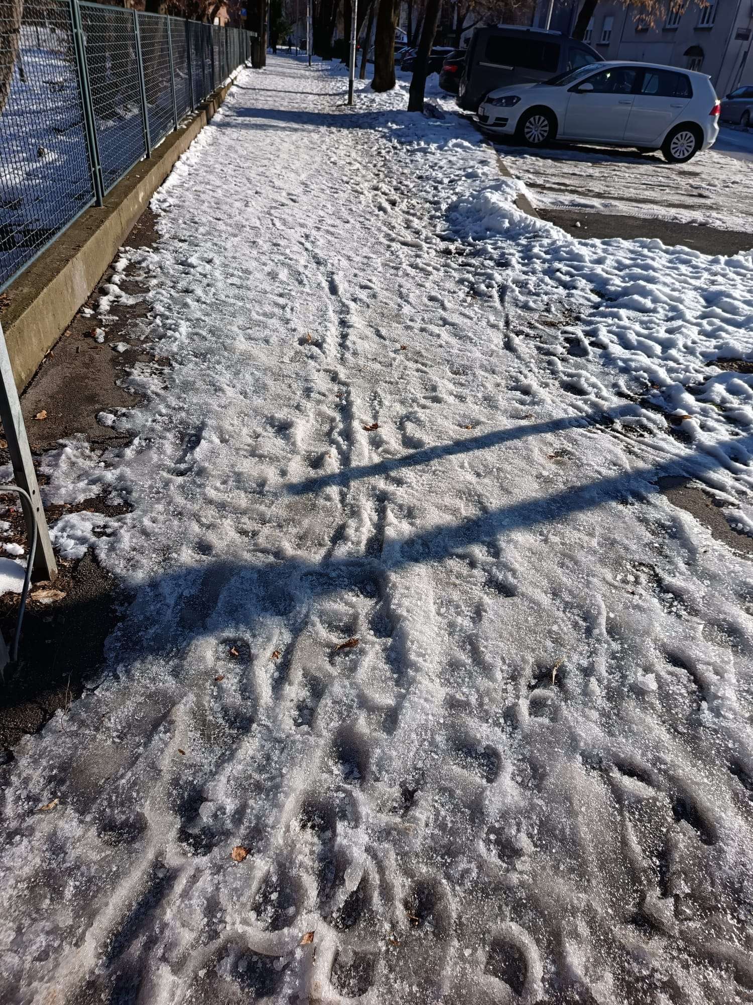 Sutra počinje škola a pješačke staze oko škole Rapska, kao i škole Marina Držića nisu očišćene zbog čega se pri niskim temperaturama stvorio led na stazama.