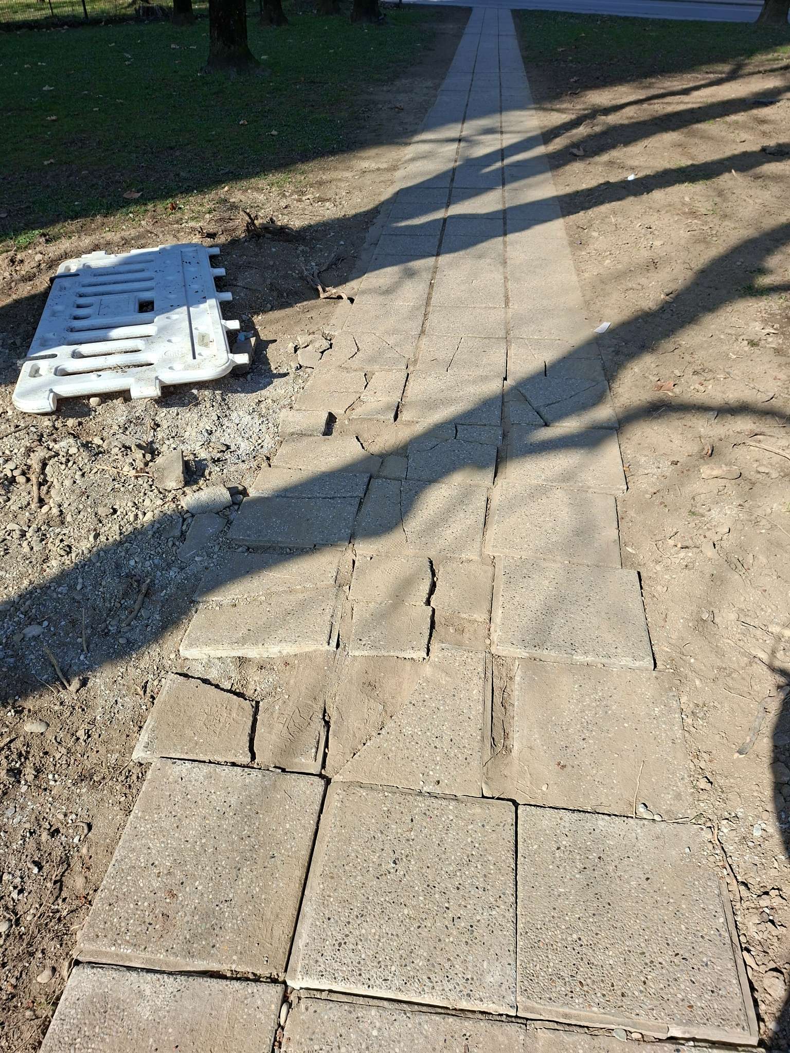 Puknuta pješačka staza nakon radova i tako ostavljena.