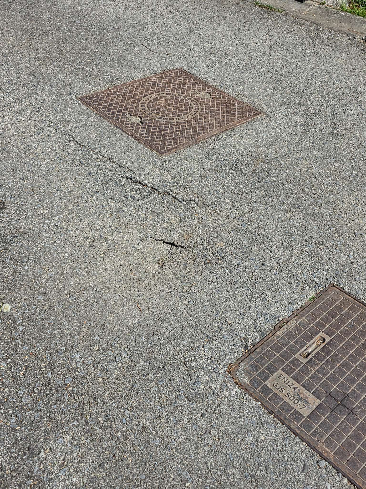 Između dvije sahte je pukao asfalt te je udubljenje na cesti a vrlo brzo ce se otvoriti i rupa na cesti.