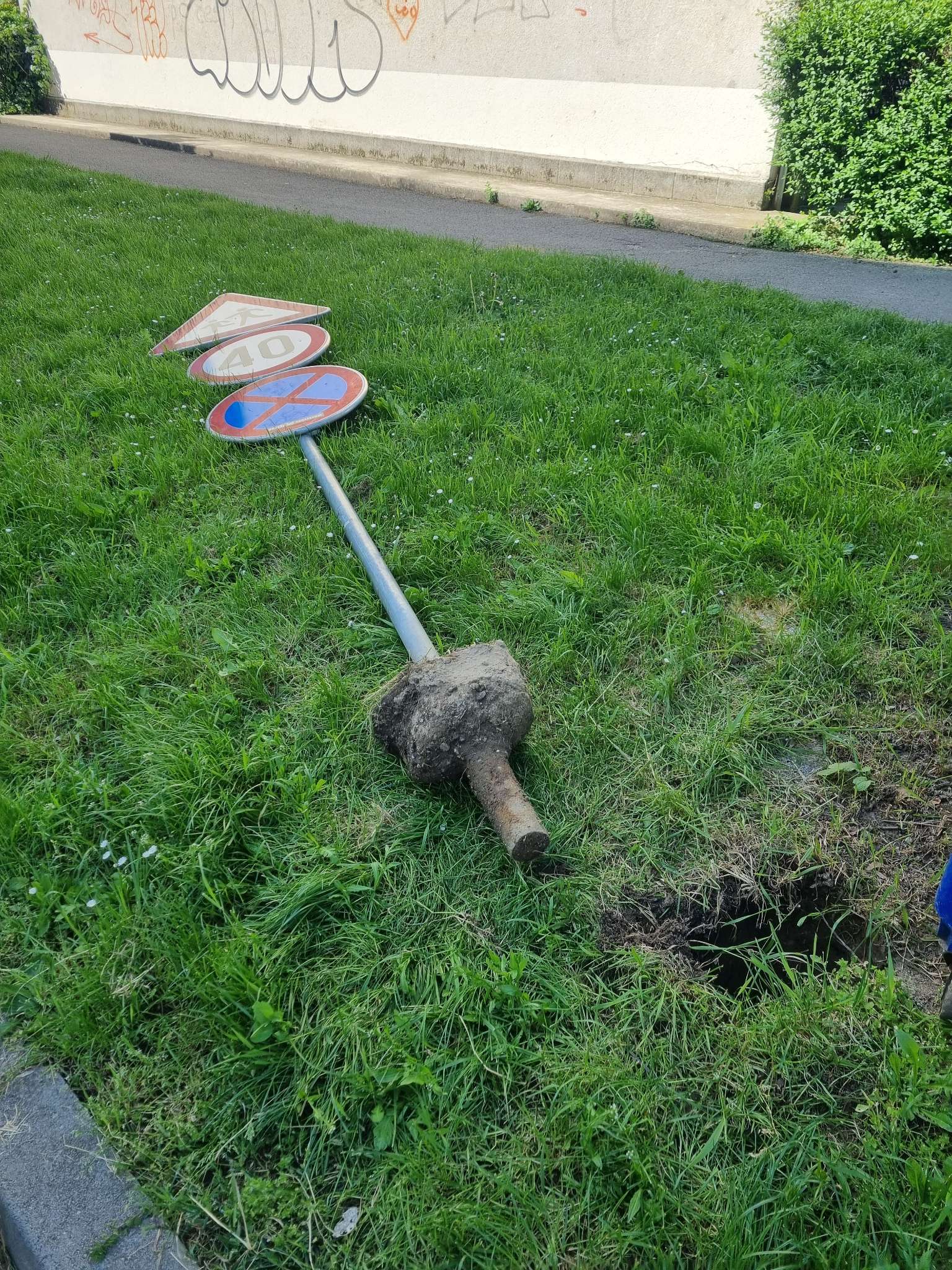 Znak 40, oprez djeca, iščupan iz zemlje